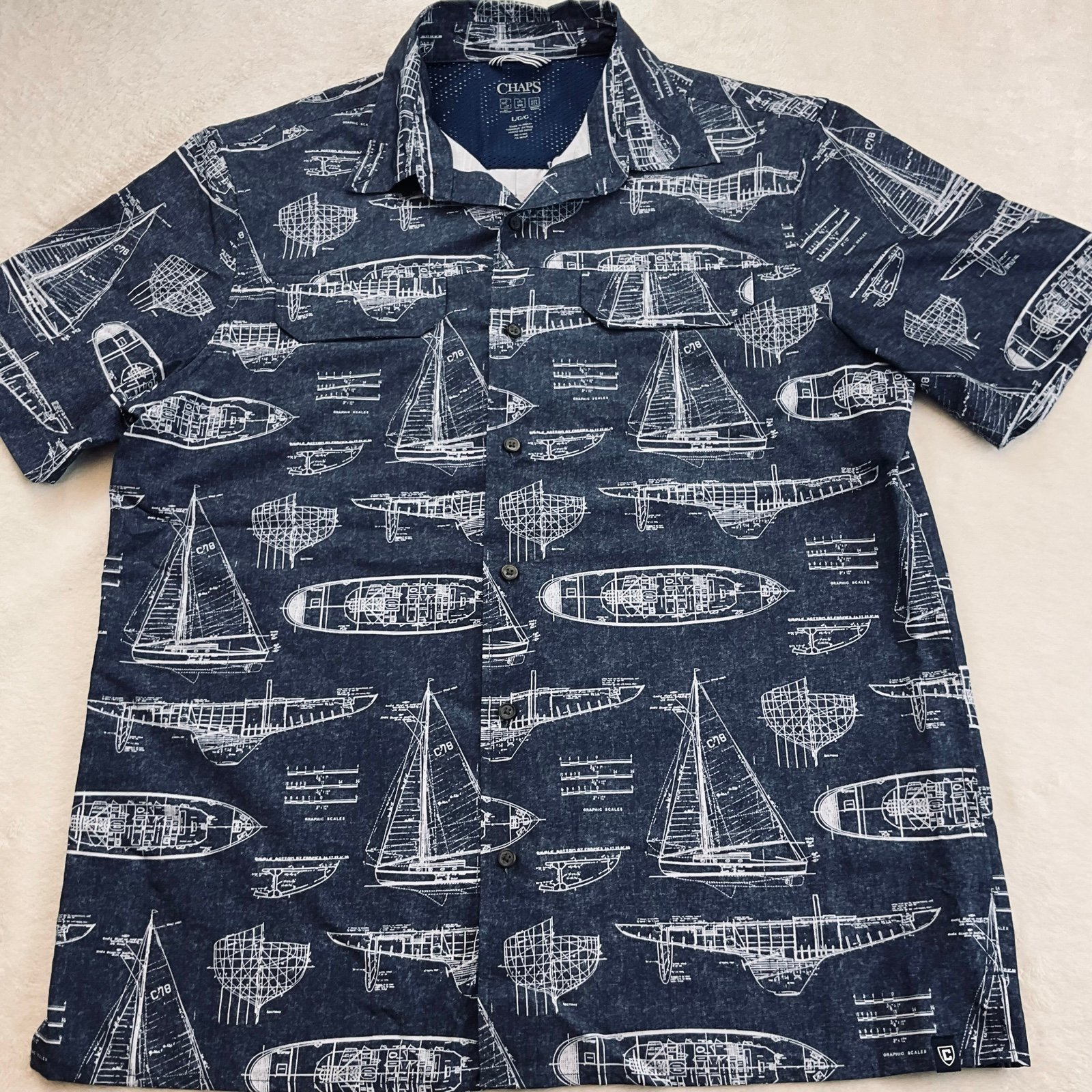 CHAPS Nautical Boat Blueprint Short Sleeve Button Down Shirt