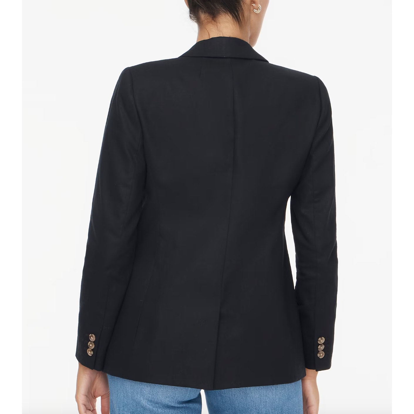 J.Crew Linen Blend One Button Blazer Jacket Classic Minimalist Black US 00 NWT